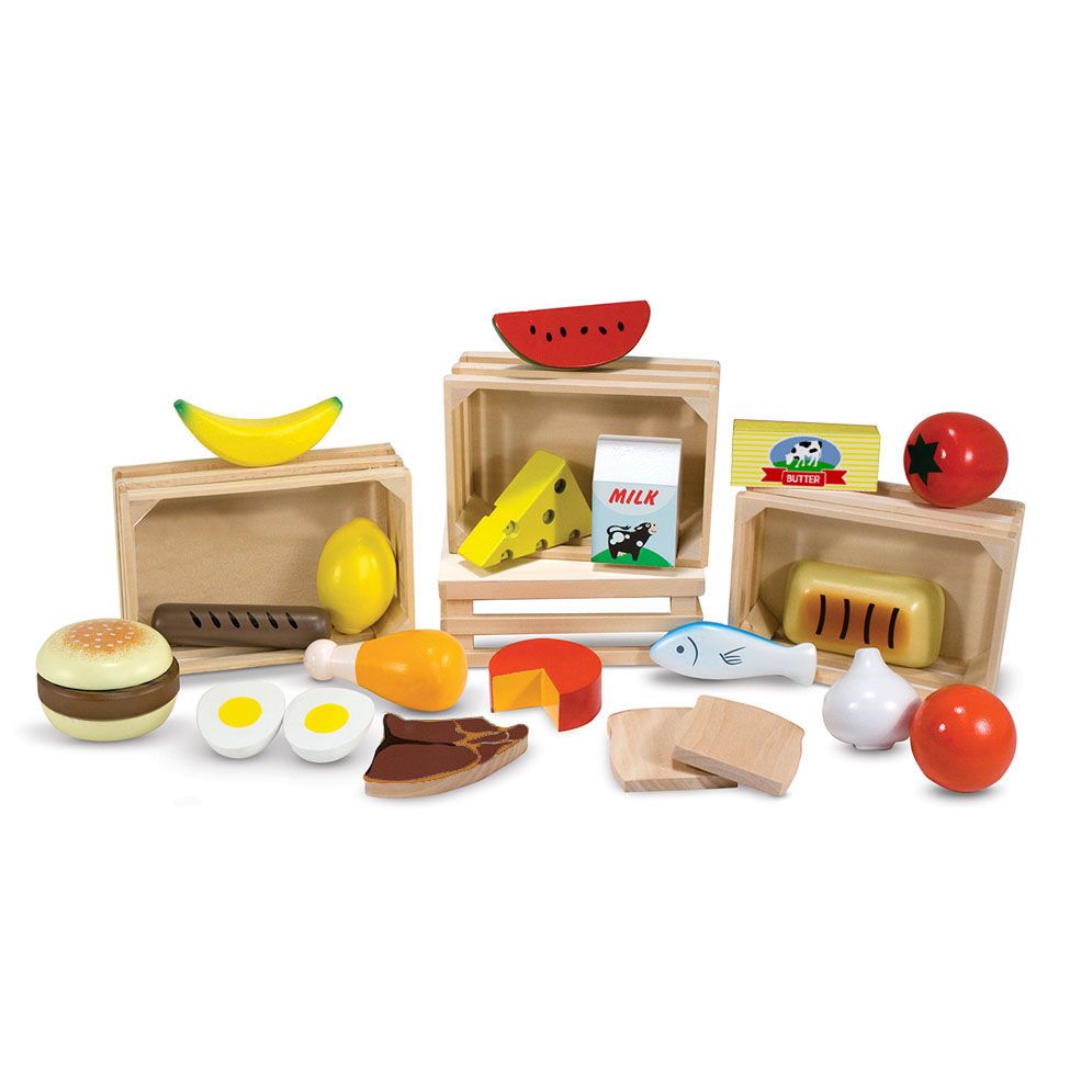Oto niezbędne wyposażenie każdego sklepu, domu, restauracji. Produkty żywnościowe do przygotowania pysznych posiłków pogrupowane na 4 rodzaje. Produkty wykonane z lakierowanego drewna, więc są praktycznie nie do zniszczenia.