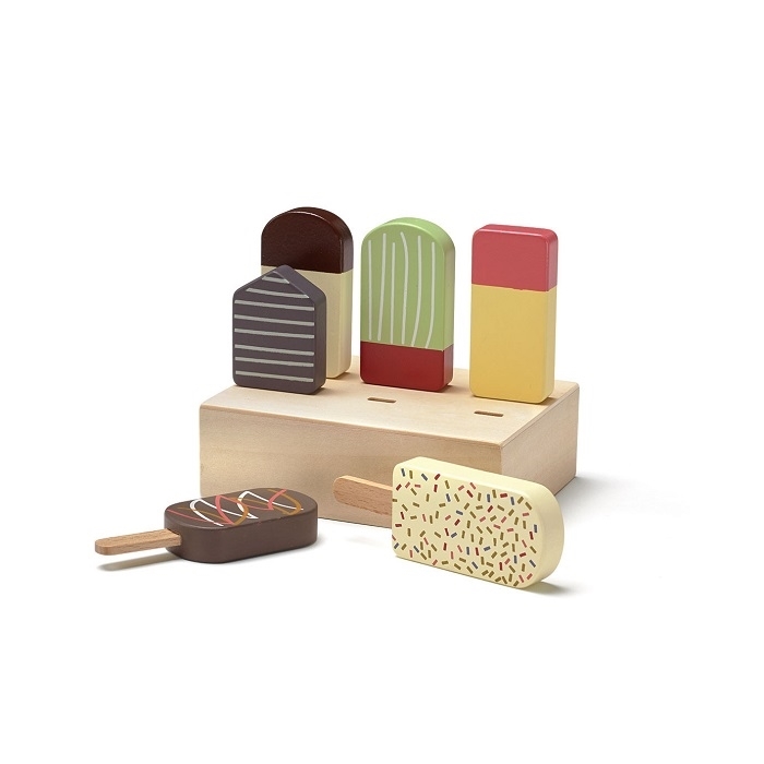 Lizaki lodowe i lody to desery za którymi przepadają wszystkie dzieci! 🙂 Lody z podstawką wykonane są z najwyższej jakości drewna z dbałością o najdrobniejszy szczegół, bezpieczne do zabawy. Będą idealnym dopełnieniem zabawy w dom, restaurację, sklep, cukiernię czy eleganckie przyjęcie. A po skończonej zabawie podstawka zamienia się w skrzynkę do której można włożyć lody, dzięki czemu nie pogubią się i będą w jednym miejscu. Podczas codziennej zabawy dziecko rozwija wyobraźnię, zdolności poznawcze oraz kreatywność. Wszystkie są tak smakowite, że chce się je zjeść od razu! Będą doskonałym prezentem dla każdego dziecka.