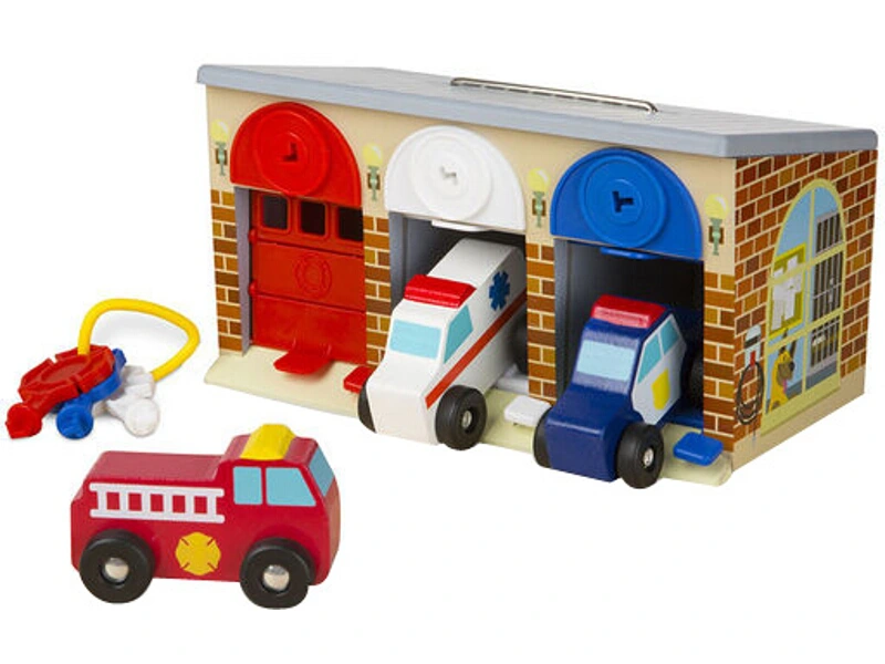 Teraz każde dziecko może mieć swój własny garaż i trzy wozy ratunkowe do zabawy w odgrywanie ról. A co równie istotne garaż ma również dodatkowe atrakcje. Oto każda brama garażowa może być otwierana i zamykana specjalnym kluczykiem. Do każdej z nich pasuje tylko jeden kluczyk, więc trzeba go odpowiednio dopasować. Wystarczy otworzyć bramę i wyruszyć na akcję.