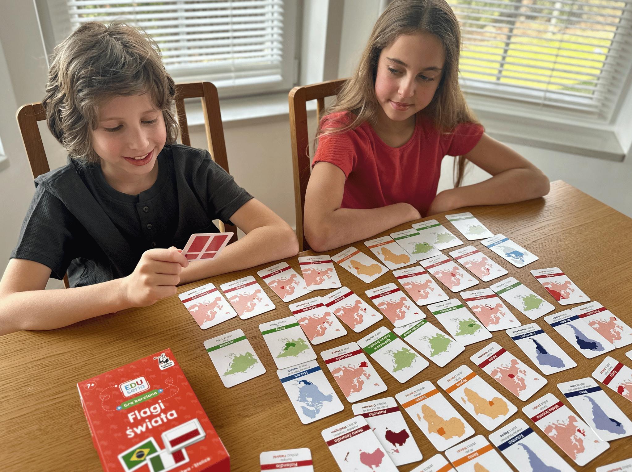 - 55 kart do zabawy i nauki flag, stolic i położenia geograficznego krajów świata.