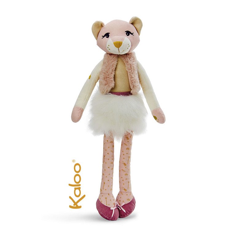 Lwica Leana francuskiej marki KALOO to idealna przyjaciółka Twojej małej dziewczynki. Jest marzycielką, zaraża entuzjazmem, zachwyca kreatywnością i siłą swojej osobowości. Wykonana z niezwykle miękkiego aksamitnego pluszu w odcieniach beżu, bieli i różu. Ubrana jest w białą futerkową spódniczkę, różową puchową kamizelkę i bordowe zamszowe baletki z wyszytymi na spodzie śladami lwich łap. Lwica ma urocze czarne oczka z zalotnymi rzęsami, złoty pyszczek i nosek, złote hafty na łapkach i aplikacje na nóżkach – wszystkie te elementy są miękkie, dzięki czemu zabawka jest w pełni bezpieczna dla dziecka.