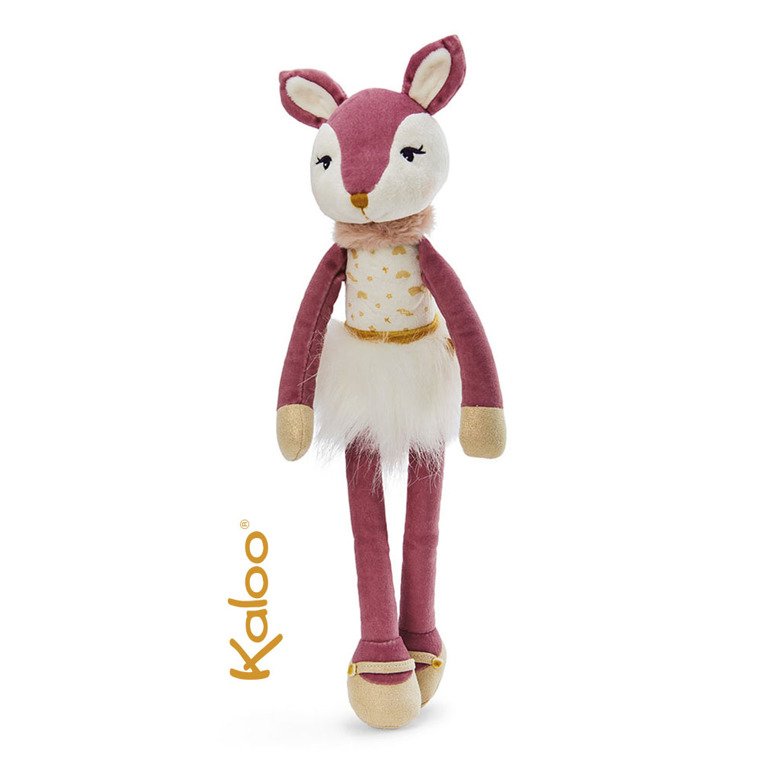 Sarenka Ava francuskiej marki KALOO to idealna przyjaciółka Twojej małej dziewczynki. Zachwyca i oczarowuje spokojem i siłą swojej osobowości. Wykonana z niezwykle miękkiego aksamitnego pluszu w bordowym odcieniu różu. Ubrana jest w białą sukienkę ze złotymi aplikacjami i futerkową spódniczką, zamszowe baletki i puchaty beżowy naszyjnik. Sarenka ma urocze czarne oczka z zalotnymi rzęsami, złoty pyszczek i nosek – wszystkie te elementy są wyszywane i miękkie, dzięki czemu zabawka jest w pełni bezpieczna dla dziecka.