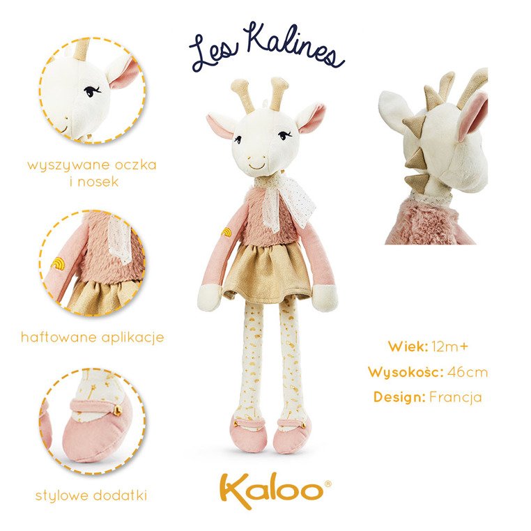 Kolekcję Les Kalines marki KALOO tworzy 6 nietuzinkowych postaci – sarenka, lisica, lwica, żyrafa, panda oraz sowa. Każda z nich wyróżnia się nie tylko wyjątkowym stylem i detalami, które czynią ją wyjątkową, ale również charakterem i osobowością, dzięki czemu z powodzeniem może stać się ulubioną bohaterką małej dziewczynki. Kolekcja Les Kalines to także innowacyjne materiały, zachwycające kreacje, ciepłe odcienie beżu, różu i złota oraz piękne opakowania!