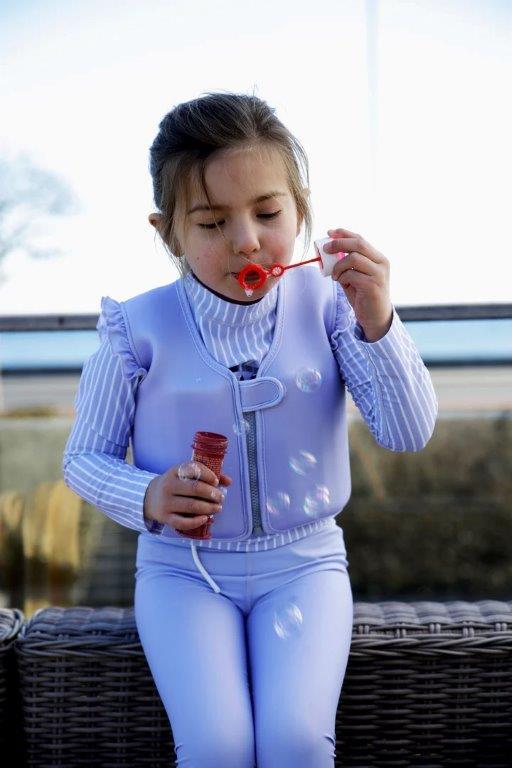Neoprenowa kamizelka wypornościowa do pływania marki Vanilla Copenhagen w uroczym lawendowym kolorze z regulowanym paskiem dla najmłodszych sprawdzi się idealnie podczas nauki pływania i zabawy, a maluchy w kamizelce będą pływać jak małe rybki w wodzie.