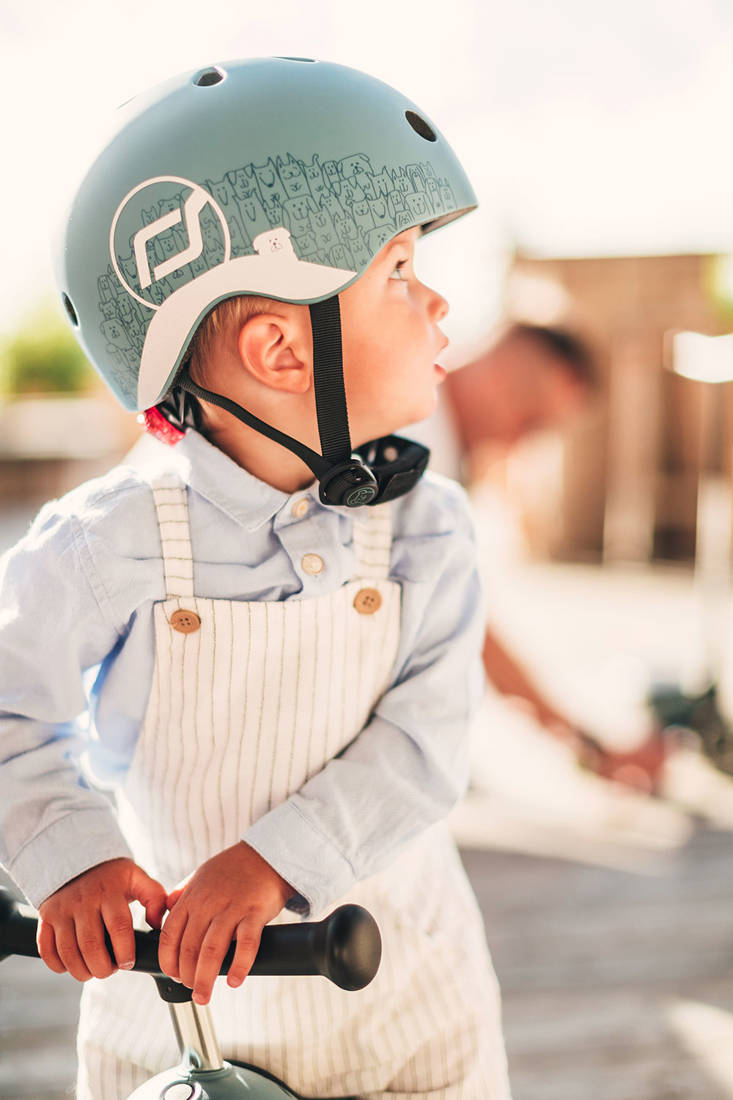 Ultralekki (waży zaledwie 240 g!), innowacyjny i stylowy dziecięcy kask ochronny z elementami odblaskowymi i lampką LED austriackiej marki Scoot & Ride, który „rośnie” razem z maluchem. Dla dzieci już od 1. roku życia, na obwód głowy od 45 do 51 cm, regulowany za pomocą pokrętła z tyłu.