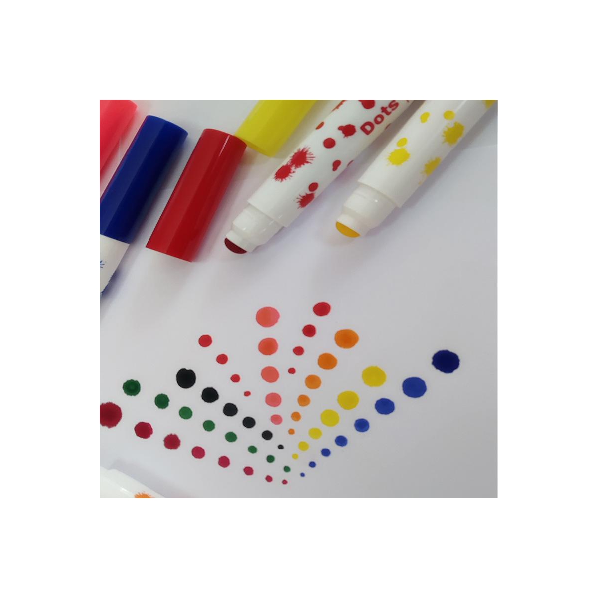Rysowanie, malowanie i kolorowanie są niezbędne dla rozwoju Dziecka. Podczas rysowania dzieci są skoncentrowane, a zarazem zrelaksowane. Rozwijają swoją kreatywność i pobudzają wyobraźnię. Kropkowe flamastry Apli Kids pomogą stworzyć Twojemu maluchowi niestandardowy rysunek. Cała zabawa polega wykonaniu dzieła z różnej wielkości kropek. Im dłużej będziemy naciskać mazakiem do kartki tym więcej farby wydobędzie się z pisaka. Jeżeli chcemy aby kropki były mniejsze to delikatnie przykładamy flamaster. Możemy zrobić kropeczki od 1 mm do 1 cm. Zestaw zawiera 8 flamastrów, każdy w grubej oprawce, dzięki czemu są one łatwe do trzymania przez małe rączki.