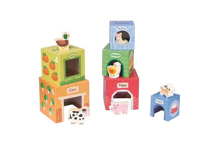 Wszystkie kubeczki i zwierzątka dziecko może ustawiać w dowolnej konfiguracji. Może je ułożyć w wieżę, może układać je niezależnie tworząc swoją farmę, gdzie każda figurka ma swój domek. Może wreszcie chować kubeczki jeden w drugi, bo każdy kolejny jest mniejszy od poprzedniego. W ten sposób dziecko uczy się zależności pomiędzy przedmiotami. Całość stanowi wiele wspaniałych atrakcji dla malucha i będzie cudną zabawką edukacyjną.