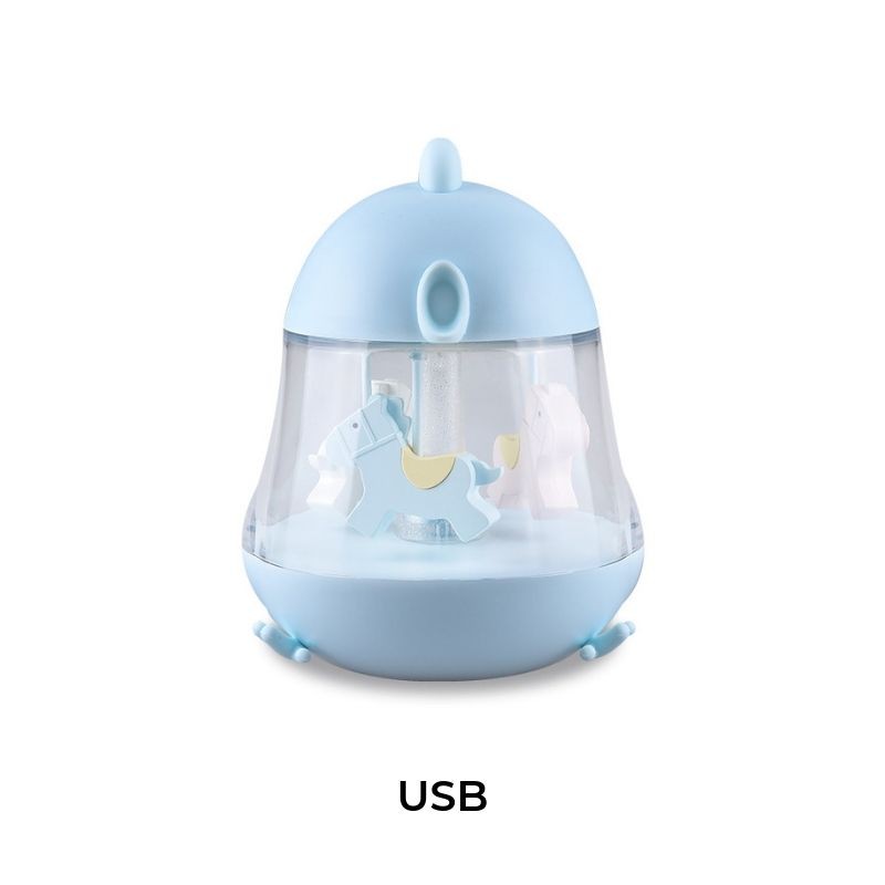 Lampka z nakręcaną pozytywką z konikami. Lampka ładowana przez kabel micro USB (w zestawie). Dotykowe włączenie i wyłączenie światełka. Wymiar: 12,1x13x15,7cm Czas świecenia po pełnym naładowaniu ~24h Tryb uśpienia po 8h