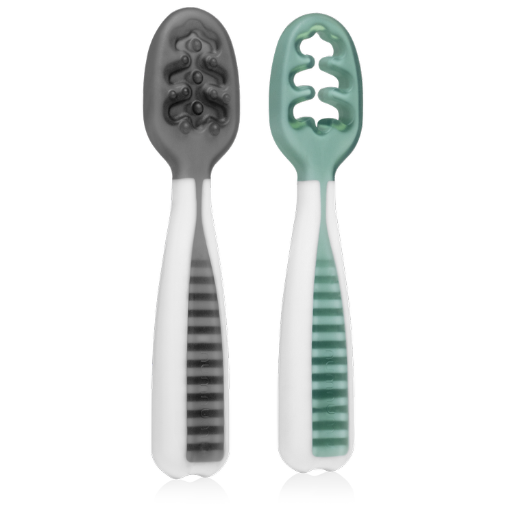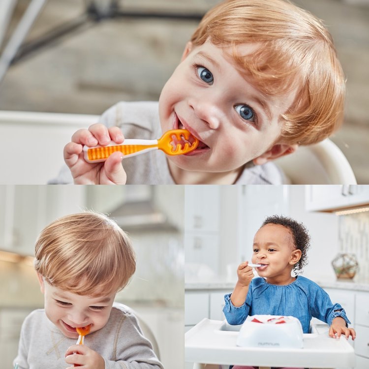 Na początek wprowadź łyżeczkę wstępną poziom 1, która pomoże złagodzić ból dziąseł związany z ząbkowaniem, a także przyzwyczai dziecko się do trzymania sztućca. Kiedy już dziecko przyswoi sobie podstawowy ruch jedzienie-buzia, można wprowadzić Poziom 2, utrzymujący większą ilość produktu i stosować naprzemiennie, na przykład do gęstszych pokarmów.