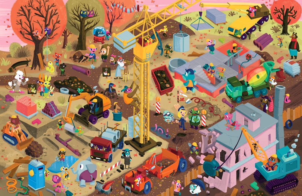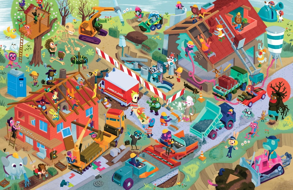 Wybierz się na budowę do miasteczka Sprężyna Zdrój! Tylko załóż kask i kalosze! Betoniarka, spychacz, walec, dźwig i wywrotka są już na miejscu. Wkrótce rozpocznie się budowa nowego domu oraz fantastycznego Sprężynowego Centrum Nauki! Tuż obok powstaje domek na drzewie, mały basen oraz nowe drogi i chodniki. Czy zauważysz zmieniające się pory roku? Przyłącz się do nas szybko, a razem uda nam się odkryć nawet szkielet dinozaura!