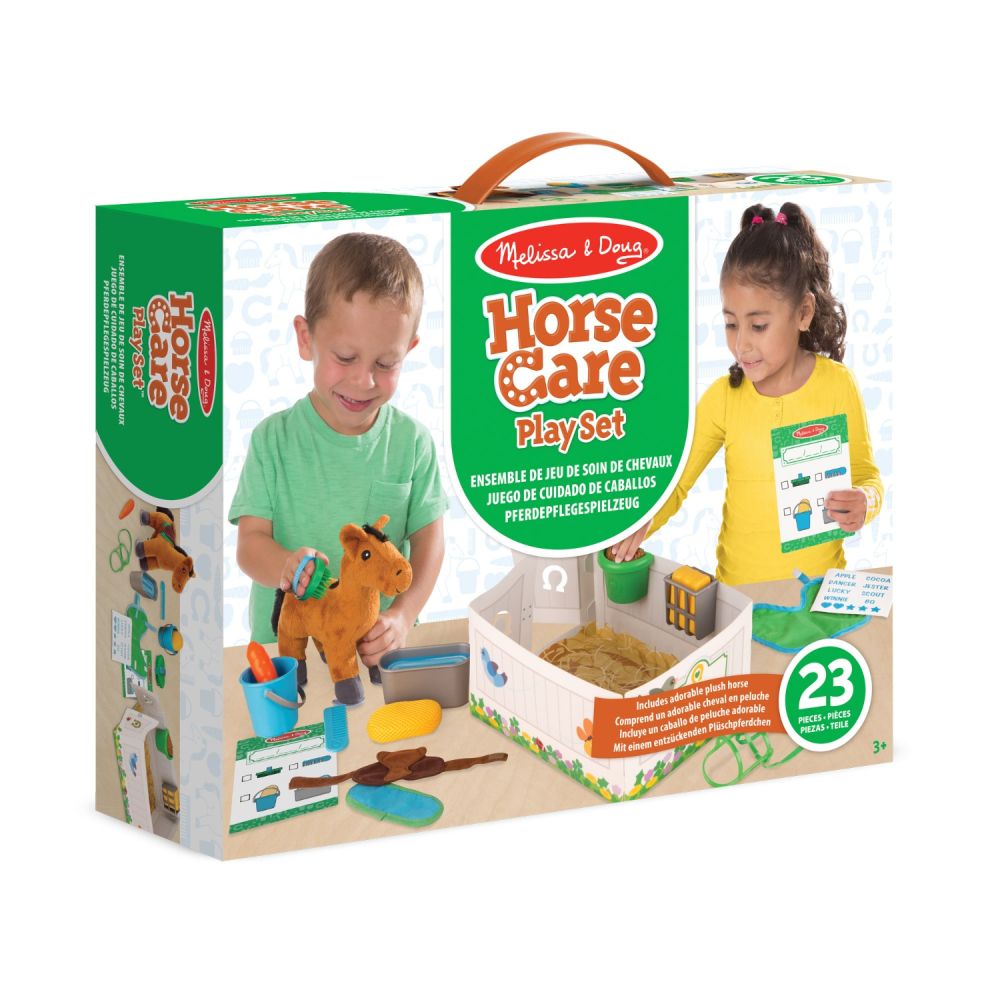 Twoje dziecko uwielbia zwierzęta? A nade wszystko jest miłośnikiem koni? Nic dziwnego. Te wspaniałe zwierzęta pasjonują ludzi od stuleci. A czy opieka nad koniem jest prosta? Można się tego nauczyć. Z tym zestawem Melissa & Doug już wkrótce opieka nad koniem nie będzie żadną tajemnicą.