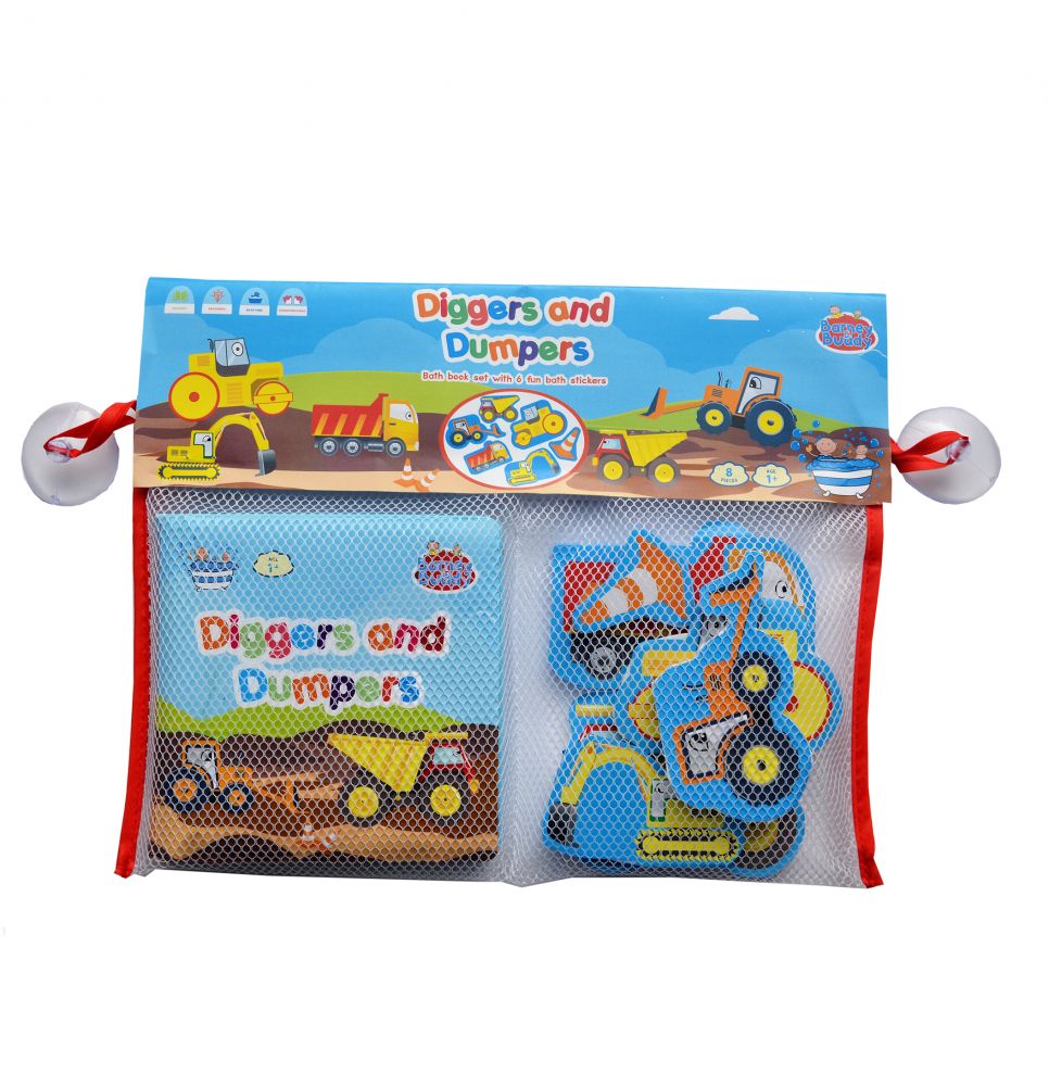 Książeczki do kąpieli to znany już produkt, ale książeczki z naklejkami to coś nowego. Teraz również w kąpieli możecie się bawić ulubioną lekturą, przyklejać i odklejać naklejki i sprawić, że codzienne czynności będą atrakcyjne dla dziecka. Ten zestaw będzie idealny dla miłośników prac budowlanych, maszyn i pojazdów.