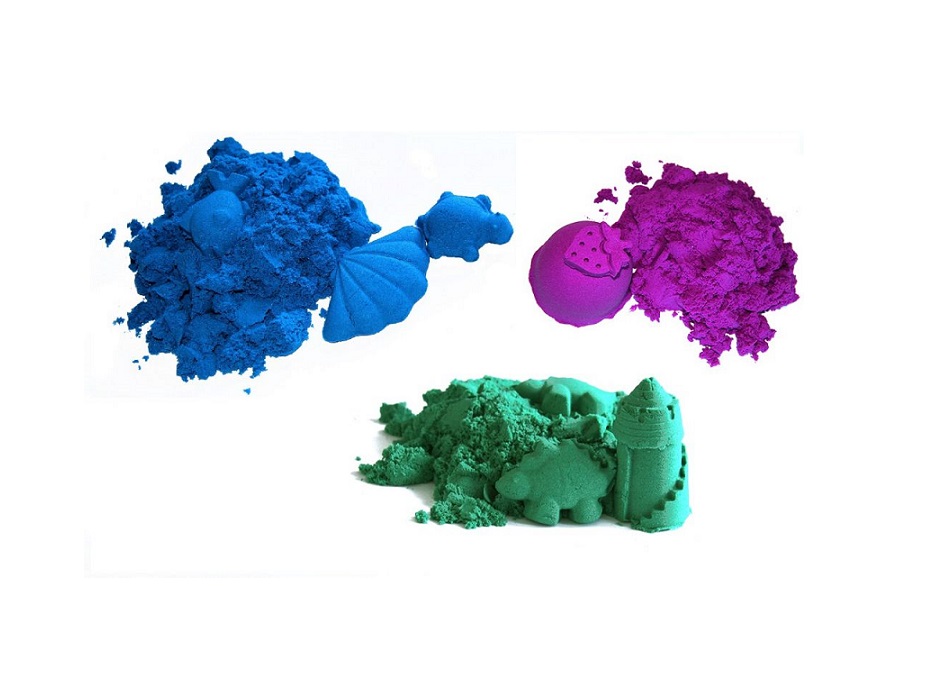W zestawie znajduje się piasek w trzech kolorach, po 1kg z każdego.