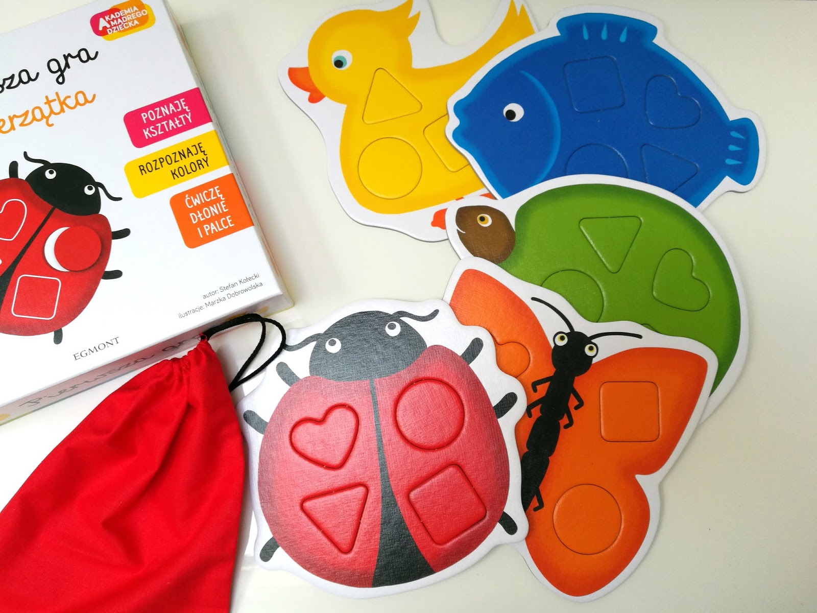 Zanim rozpoczniesz z dzieckiem grę, pokaż mu jej elementy i omów nazwy zwie-rząt (biedronka, rybka, żółw, motyl, kaczuszka) i kolory jakie mają. Porozmawiaj z dzieckiem o figurach i kształtach. Nazwij je i podotykajcie je wspólnie.