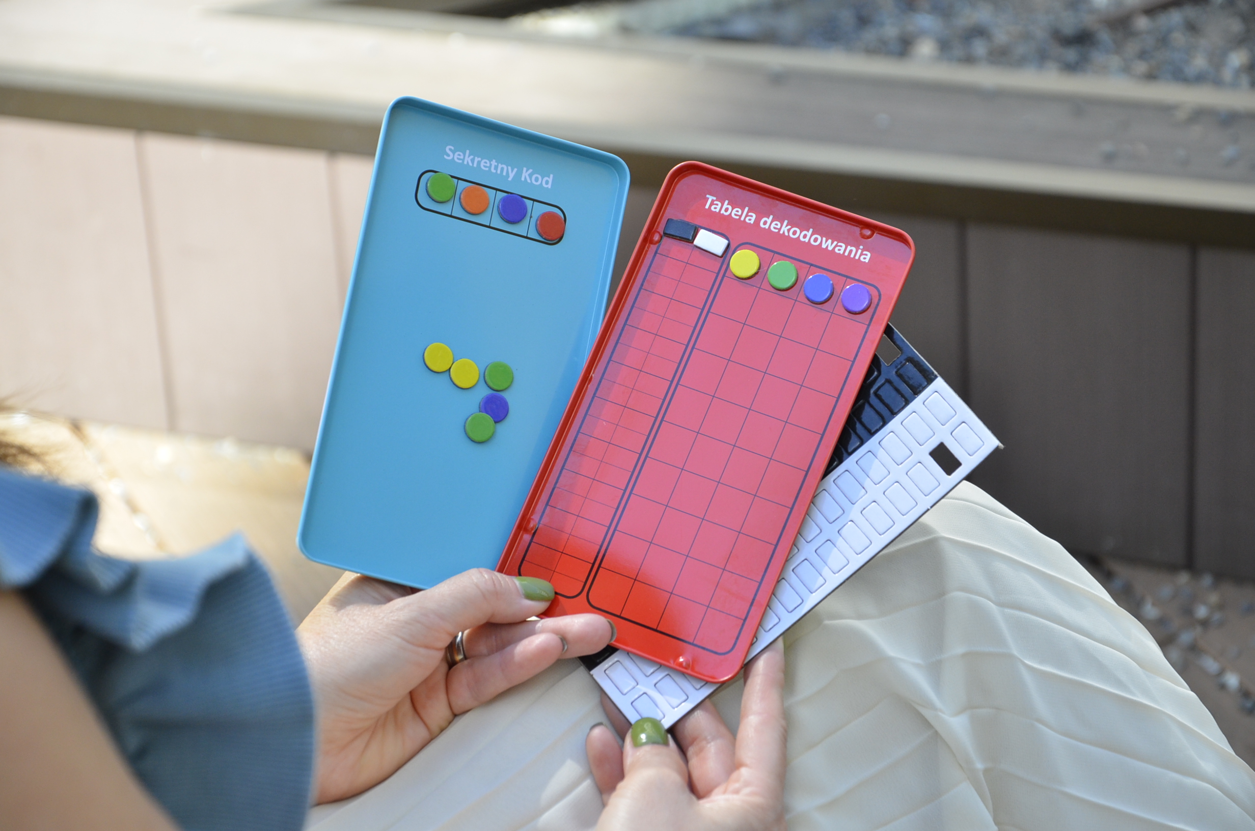 Cel gry: złam kod swojego przeciwnika, przy jak najmniejszej liczbie podejść – wskaż pozycje oraz kolory wszystkich magnesów znajdujących się w jednej linii.