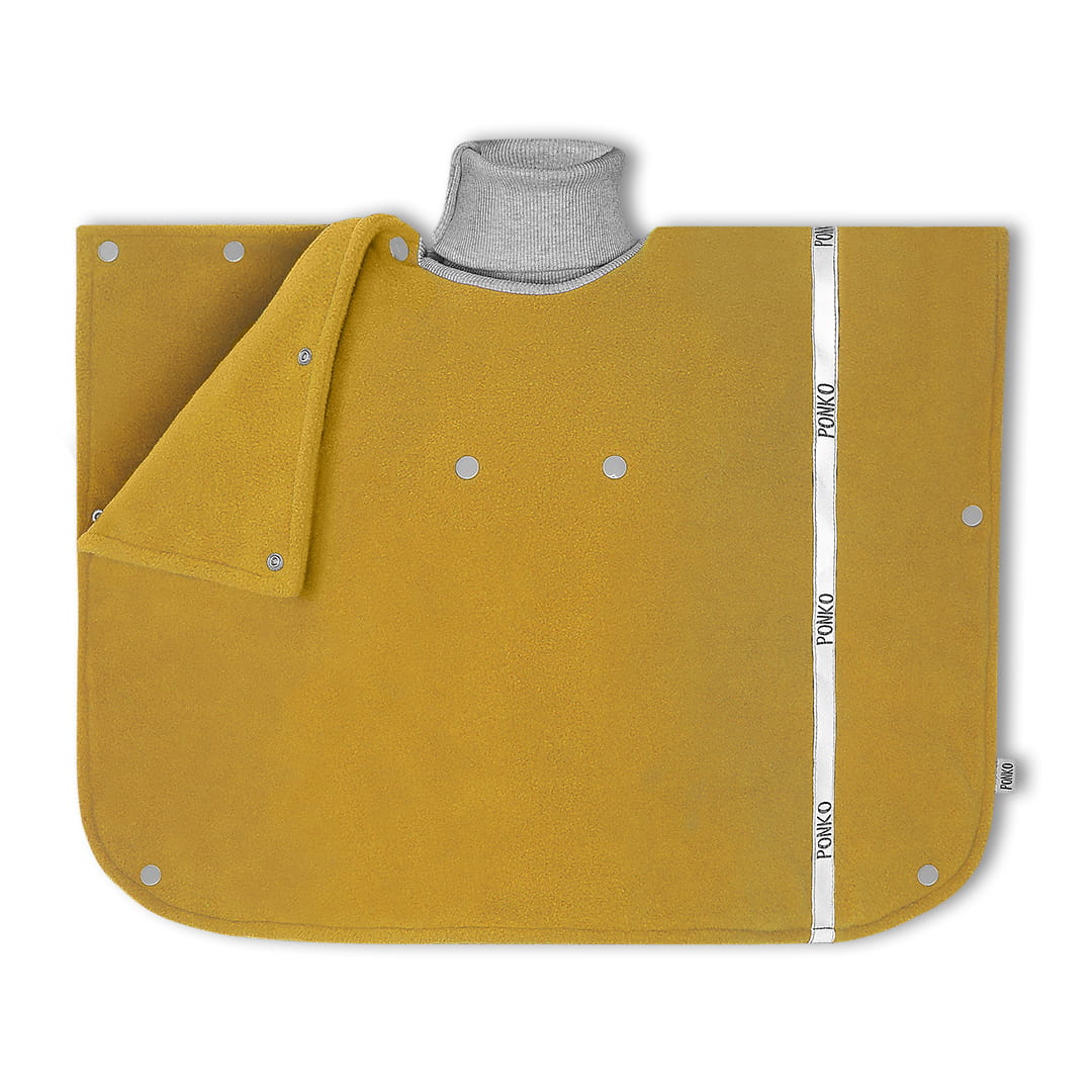 Poncza wykonane są z polaru, który zapewnia maksymalny komfort cieplny przy niskiej wadze. Golfy to 97% bawełny i 3% elastanu, dzięki temu pasują zarówno na roczniaka jak i pięciolatka, a także przechodzą przez głowy osób dorosłych (w rodzinie PONKO każdy ma swoje ponczo – przetestowaliśmy to :D).