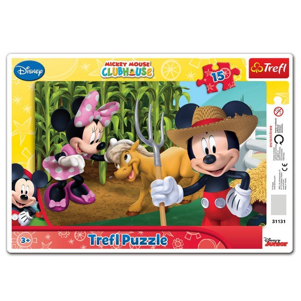 Pomysłowe puzzle dla młodszych dzieci z piękną grafiką Disneya. Układanka zawiera 15 elementów umieszczonych w ozdobnej, spójnej graficznie ramce, tworzącej z obrazkiem bardzo ładną całość. Dodatkowo ramka ułatwia młodszym dzieciom ułożenie obrazka i pozwala na bezpieczne przenoszenie układanki, dzięki czemu swobodnie ozdobimy nią pokój. Wyraziste kolory i prosty wzór są idealnie dostosowane do wieku i umiejętności dziecka. Po ułożeniu powstanie piękny obrazek przedstawiający Myszkę Miki i Minnie pracujących na bajkowej farmie.