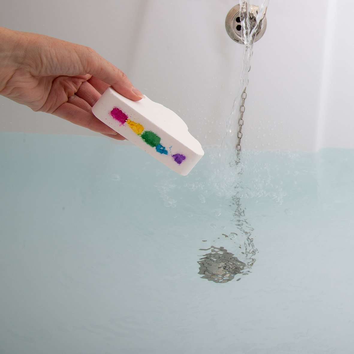 To proste! Napełnij wannę ciepłą wodą, wrzuć chmurkę do środka i uwolnij kolorową tęczę.