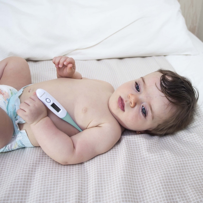 Termometr flexi mierzy temperaturę zaledwnie w 10 sekund poprzez użycie go pod pachą, w sposób oralny i rektalny.