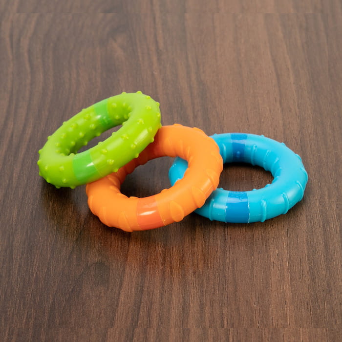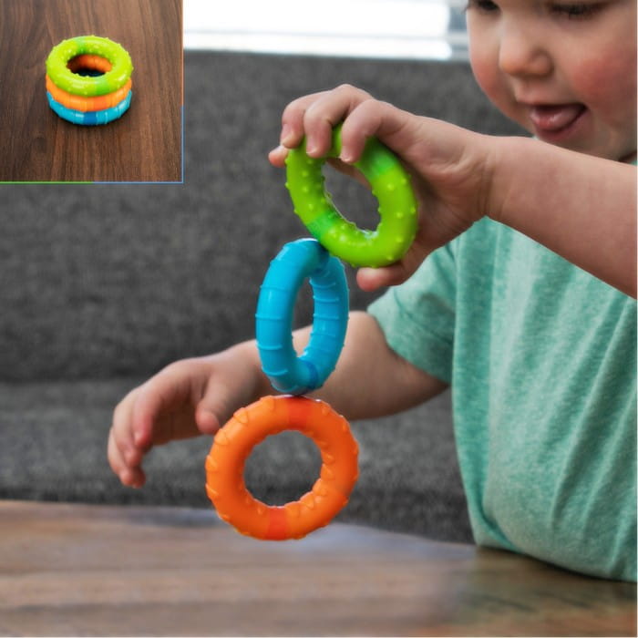 Szkrab będzie zachwycony kółeczkami, które nie są połączone w żaden sposób a mimo to trzymają się razem.