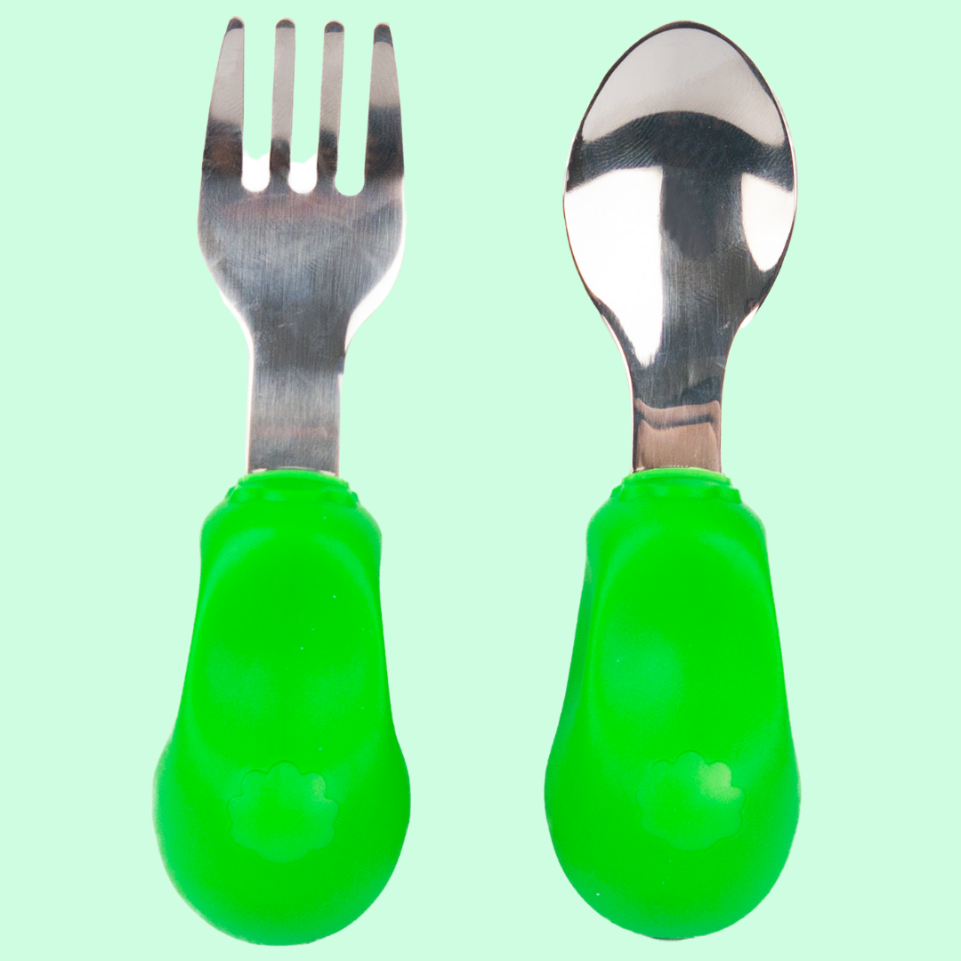 Fenomenalne sztućce zalecane przez neurologopedów oraz jako produkt wspierający samodzielne spożywanie posiłków w Dzień Dobry TVN. Zestaw polecany dla dzieci między 10-12 miesiącem życia do około 3 lat. Tak długo jak dziecko posługuje się chwytem dłoniowym. Absolutnie intuicyjne.