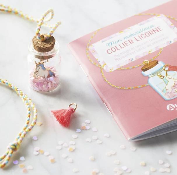 Zawieszka Jednorożec w buteleczce DIY od Auzou. Zestaw składa się z fiolki wraz ze ślicznym jednorożcem z małymi opalizującymi serduszkami, różowym pomponem, plecioną złotą nitką, pierścieniami łączącymi. Zestaw jest zapakowany w ładne, kartonowe pudełeczko z szybką. Będzie doskonałym prezentem dla każdej dziewczynki, która kocha jednorożce.