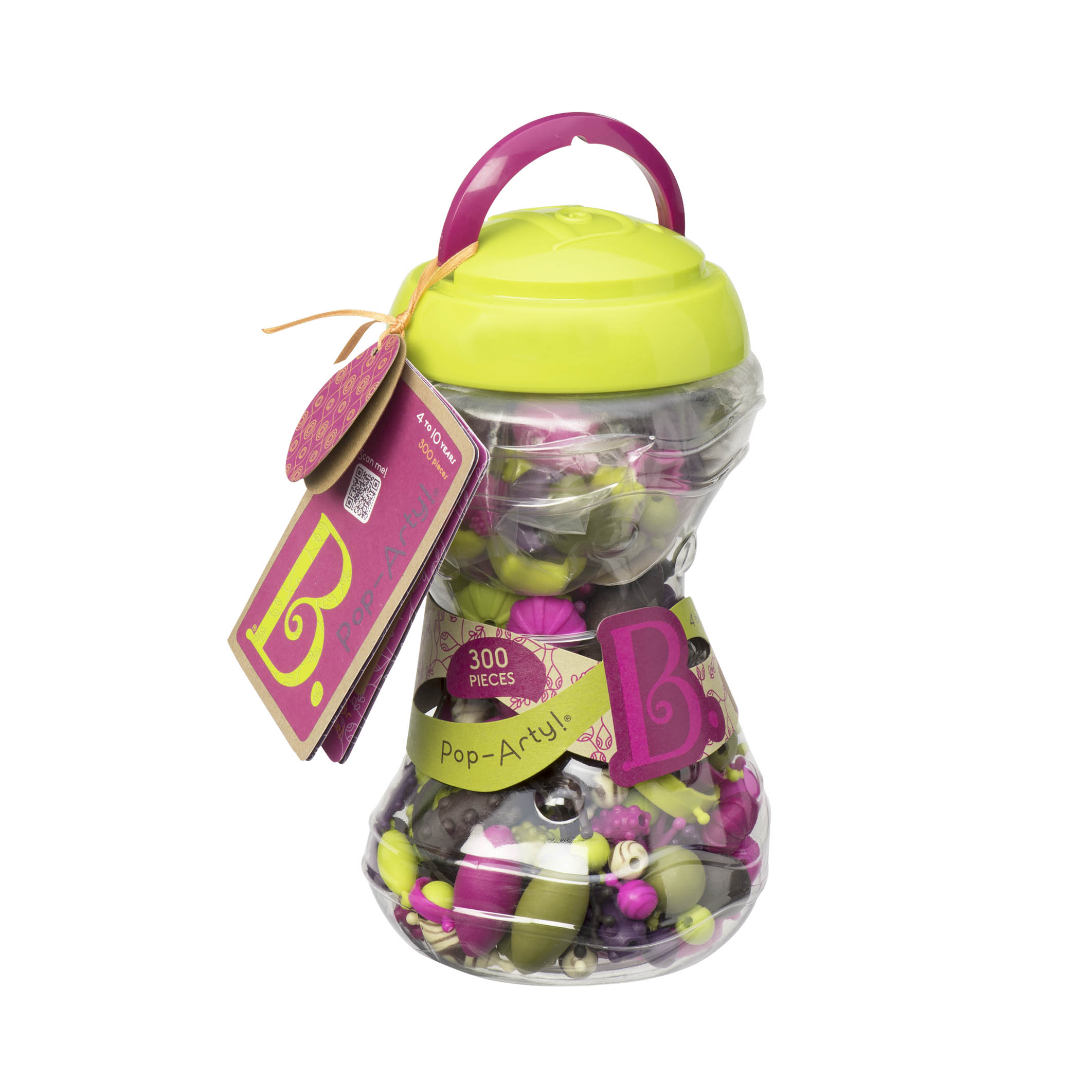 300 różnorodnych elementów SENSORYCZNYCH, w tym 7 baz do tworzenia pierścionków i 5 baz do tworzenia bransoletek – całość w praktycznym, zakręcanym słoju z uchwytem.