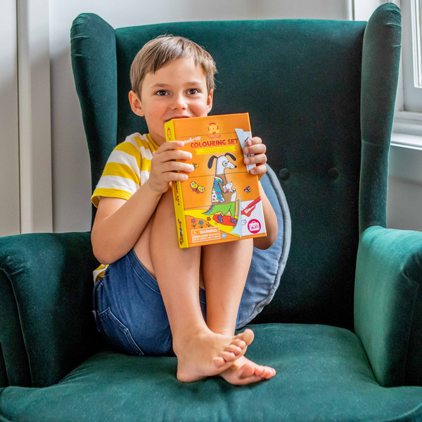 Skład zestawu: 32x strony do kolorowania na spiralkach, 10x markerów, 4x puste strony do swobodnego rysowania, magnetyczne pudełko do przechowywania