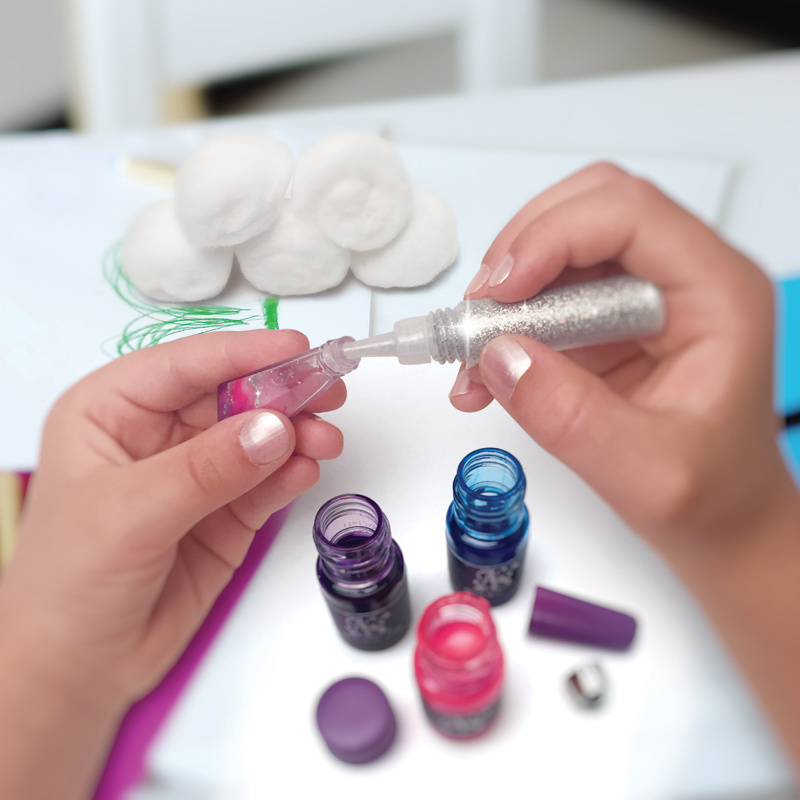 A może by tak zamknąć magię i blask niezwykłej krainy Nebulous w krysztale? Teraz to możliwe z zestawem DIY do wykonania niezwykłych naszyjników. To komplet pięciu maleńkich buteleczek przypominających minerały, które wypełnia się brokatem, kolorowym tuszem i zawiesza na jednej z trzech tasiemek lub przyczepia np. do kluczy. Pozostaje tylko ująć kryształ w dłoń, wypowiedzieć życzenie i mocno wierzyć, że się spełni. To kreatywna zabawa, dzięki której każdy poczuje się jak projektant biżuterii.