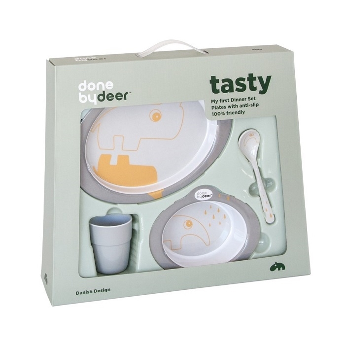 Przygotuj się na wielkie ucztowanie. Zestaw obiadowy idealny dla Maluchów uczących się samodzielnie jeść. W nim najlepiej smakuje obiad mamy 🙂 Zestaw dla małego konsumenta składa się z talerzyka, miseczki, łyżeczki i kubeczka. Dzieci będą zachwycone własnym uroczym zestawem obiadowym. Jedzenie z nich to sama przyjemność. Miseczka będzie idealna do podawania zupki, bądź owsianki. Jedząc obiadek będzie ciekawy co kryje się na dnie misieczki i talerzyka. Idealne do podawania pierwszych posiłków. Twój Maluch uwielbia pyszne przetarte marchewki? To będzie idealny zestaw do takich posiłków, gdyż nie odbarwia się i jest łatwo zmywalny. Dodatkowo zawierają spód antypoślizgowy. Poręczny, lekki kubeczek będzie towarzyszył Waszym małym pociechom przy każdym posiłku. Kubek został zaprojektowany tak, aby mieścił się do małych rączek dziecka z wielkimi ambicjami. Łyżeczka zachęci Malucha do samodzielnej nauki jedzenia, a specjalnie wyprofilowany kształt ułatwi dziecku nabieranie odpowiednich porcji. Zestaw obiadowy z pewnością sprawi, że nawet największy niejadek będzie ze smakiem jadł posiłek zaserwowany przez zabawnych przyjaciół Done by Deer.