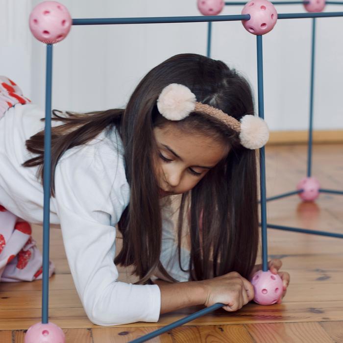 Elementy Zwariowanego Namiotu łączą się intuicyjnie, stabilnie trzymają razem. Są lekkie, przyjemne w dotyku i bardzo wytrzymałe. Gotowe bryły są bezpieczne i łatwe do przenoszenia, a po skończonej zabawie można łatwo je złożyć i nie zajmują dużo miejsca. Konstruowanie z kul i patyczków to okazja do rozwijania wyobraźni przestrzennej i świetny trening zdolności manualnych.